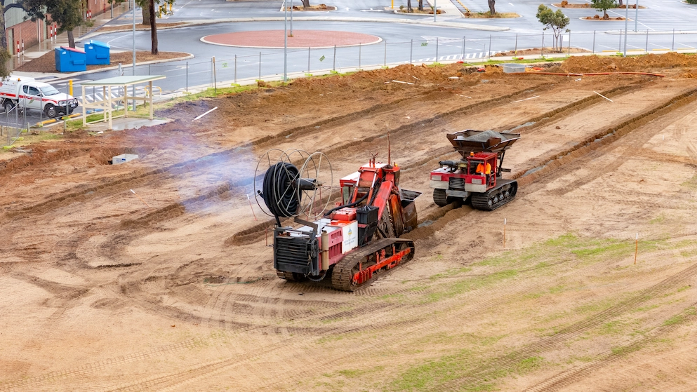 We were involved in a larger scale project of rebuilding the oval at Ray Owen, we were working closely with Sports Turf Construction making time frames and communication important, this project involved a lot of hard rock digging with specialty rock teeth on our 2620 Masten Broek machine, we installed 6.5kms of Subsurface Drainage linked up to 225mm – 375mm collector pipes into concrete pits including concrete headwalls as designed. This was another Project we worked closely with intercompany businesses to achieve a great outcome for the City of Kalamunda